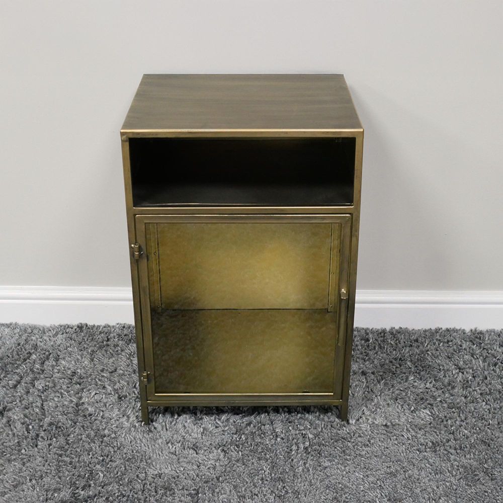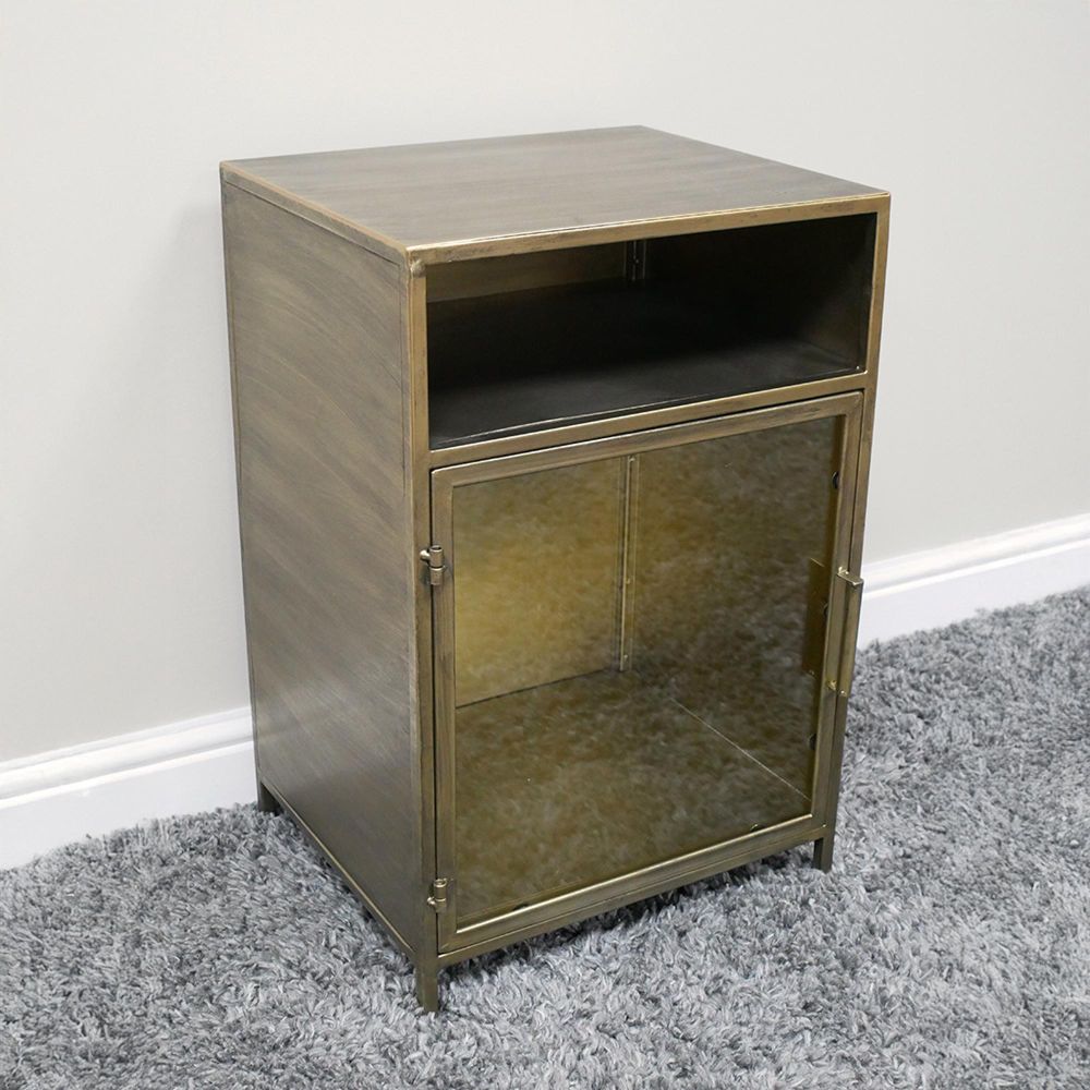 Bedside Cabinet - 1 Door - Brushed Metal and Glass