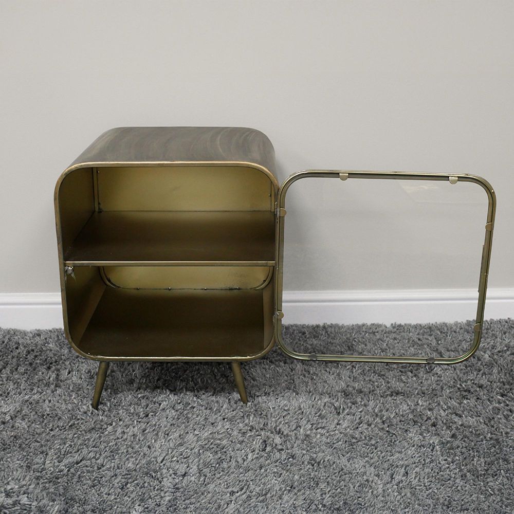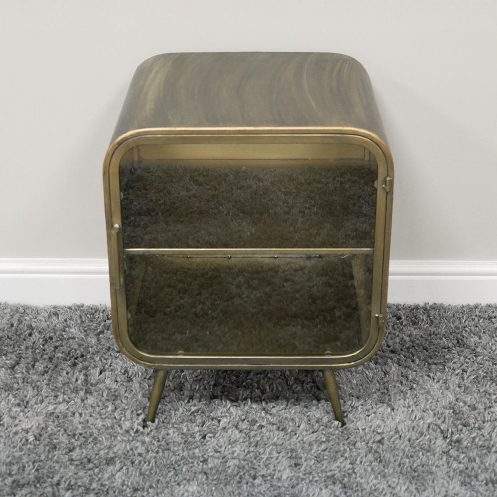 Bedside Cabinet - 1 Door - Curved Brushed Metal and Glass
