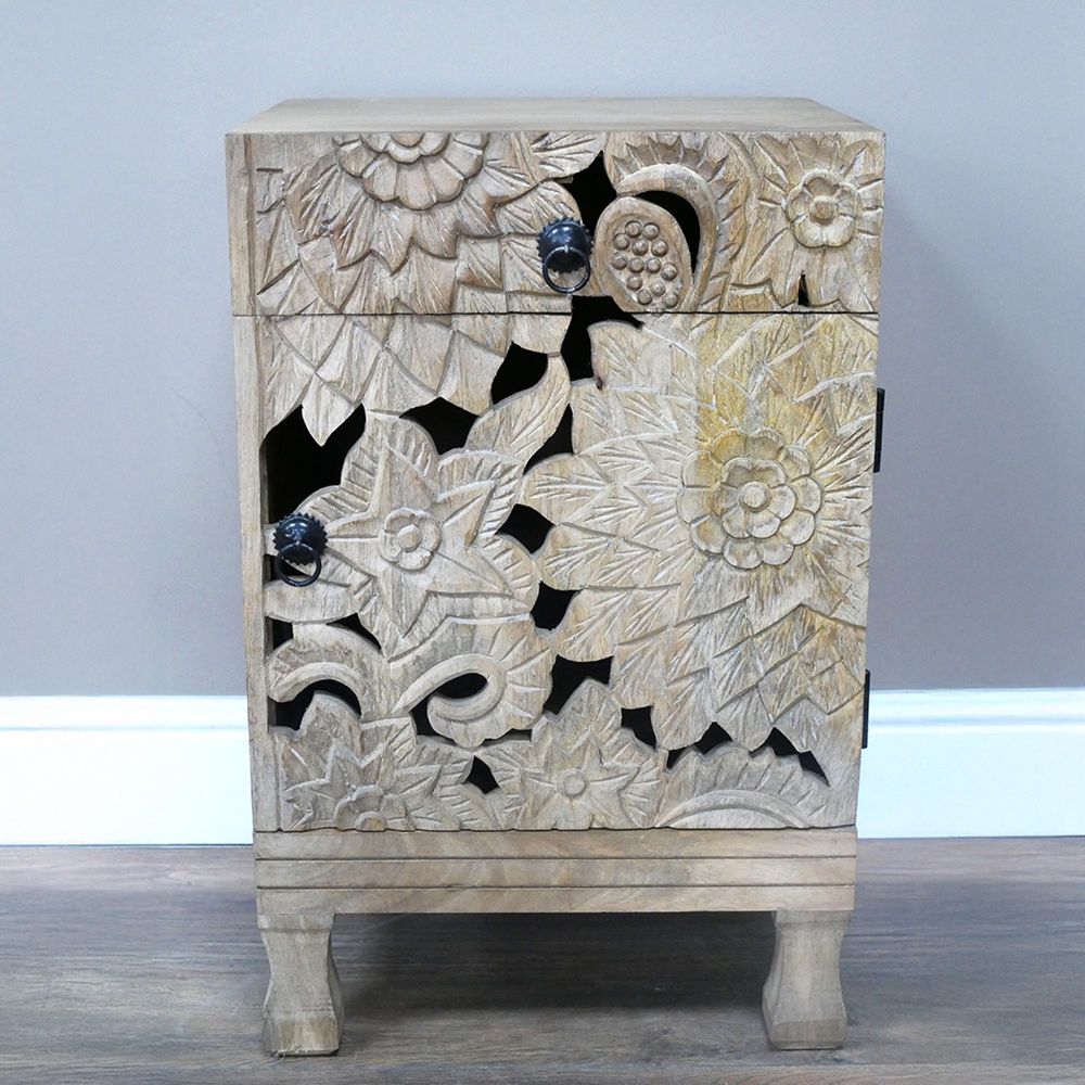 Bedside Cabinet - 1 Door - 1 Drawer - Carved Mango Wood