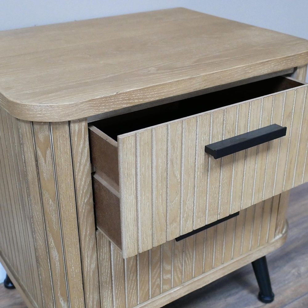 Bedside Cabinet - 2 Drawer - Ribbed Wooden