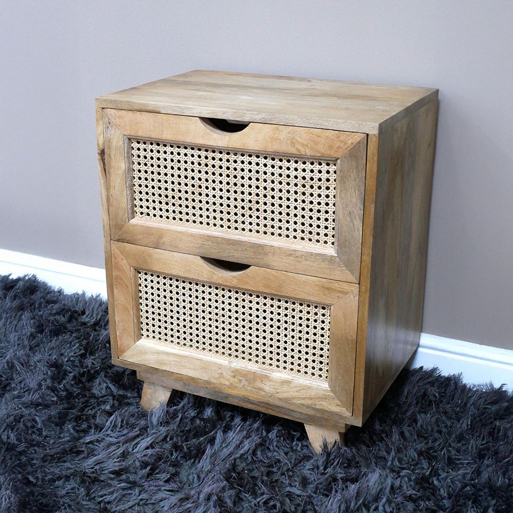 Bedside Cabinet - 2 Drawer - Mango Wood and Rattan