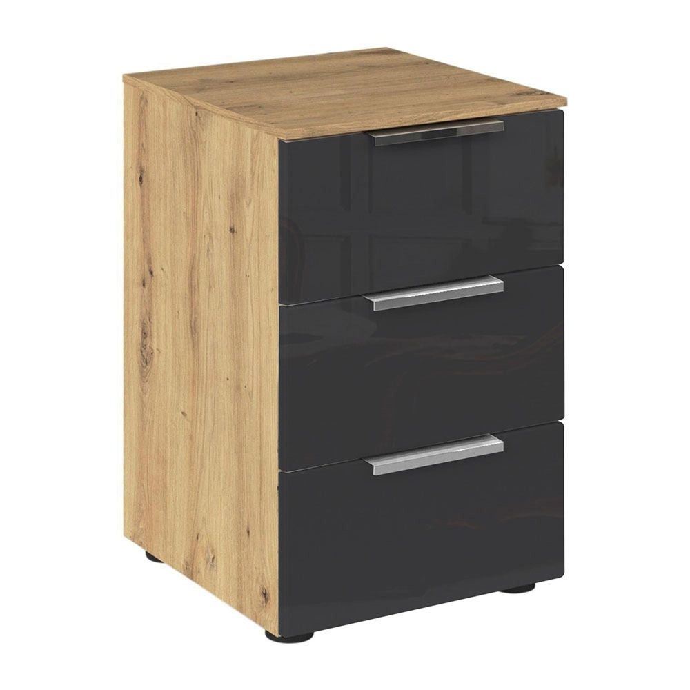 Rauch Flipp 3 Drawer Bedside Cabinet with Adjustable Height - Artisan Oak and Basalt Glass