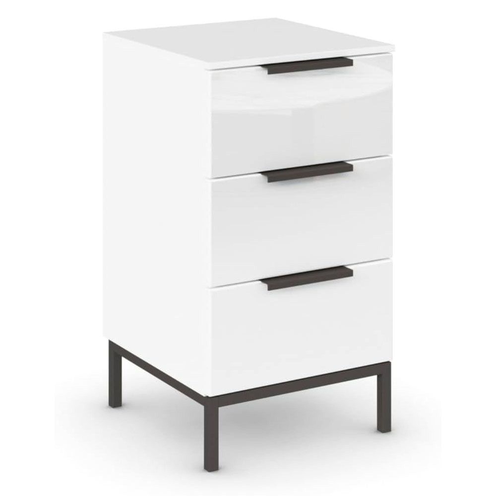 Rauch Flipp 3 Drawer Bedside Cabinet with Metal Base - Alpine White and White Glass