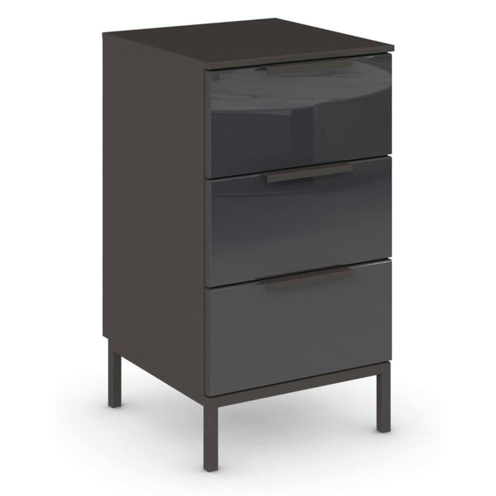 Rauch Flipp 3 Drawer Bedside Cabinet with Metal Base - Graphite and Basalt Glass