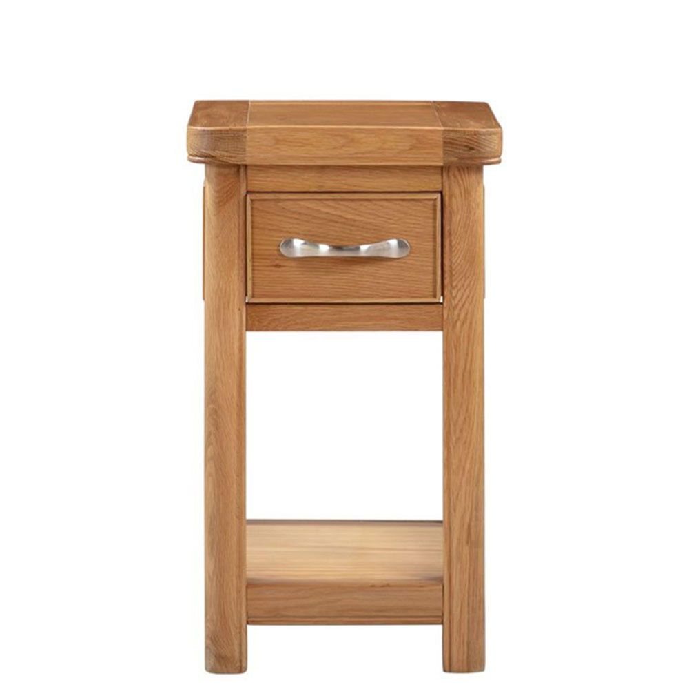 Item Code: 110-48 The Clarion Small Bedside features a single drawer with a useful shelf underneath. Manufactured in high grade oak the range is characterised by its curved corners, classic moulding and contemporary stainless steel handle.Free Delivery