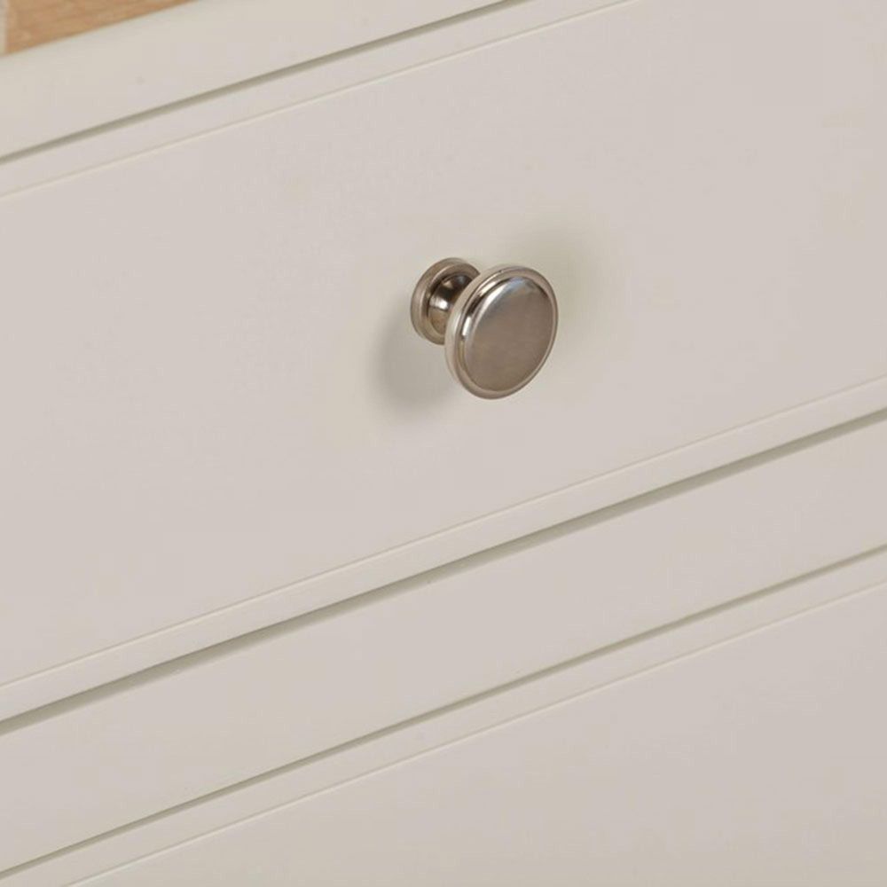 Item Code: 114-01 Hayley Painted Bedside with 3 drawers, is characterised by its contemporary washed oak top finish, and clean shaker style painted base in an off white finish. The drawers come with a choice of knob or retro cup handle.Free Delivery