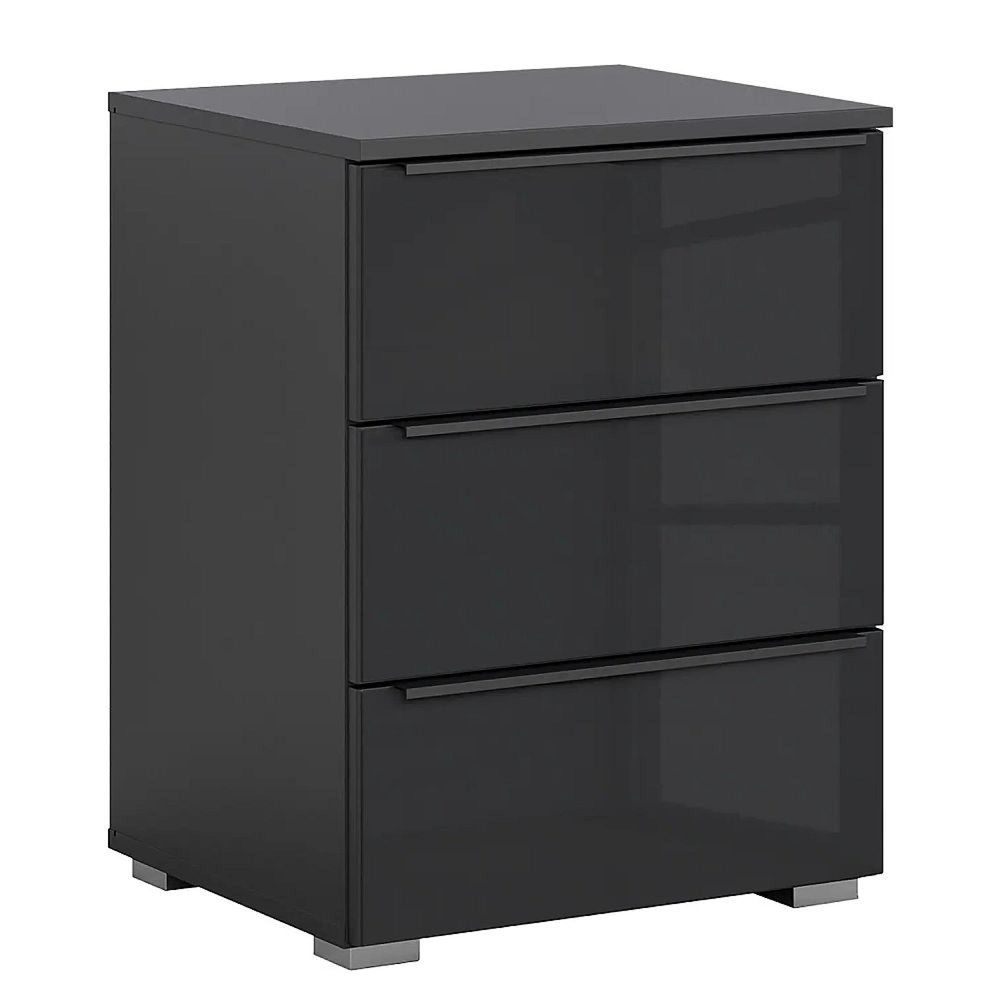 Rauch Monostar 3 Drawer Bedside Cabinet - Metallic Dark Grey with Basalt Glass