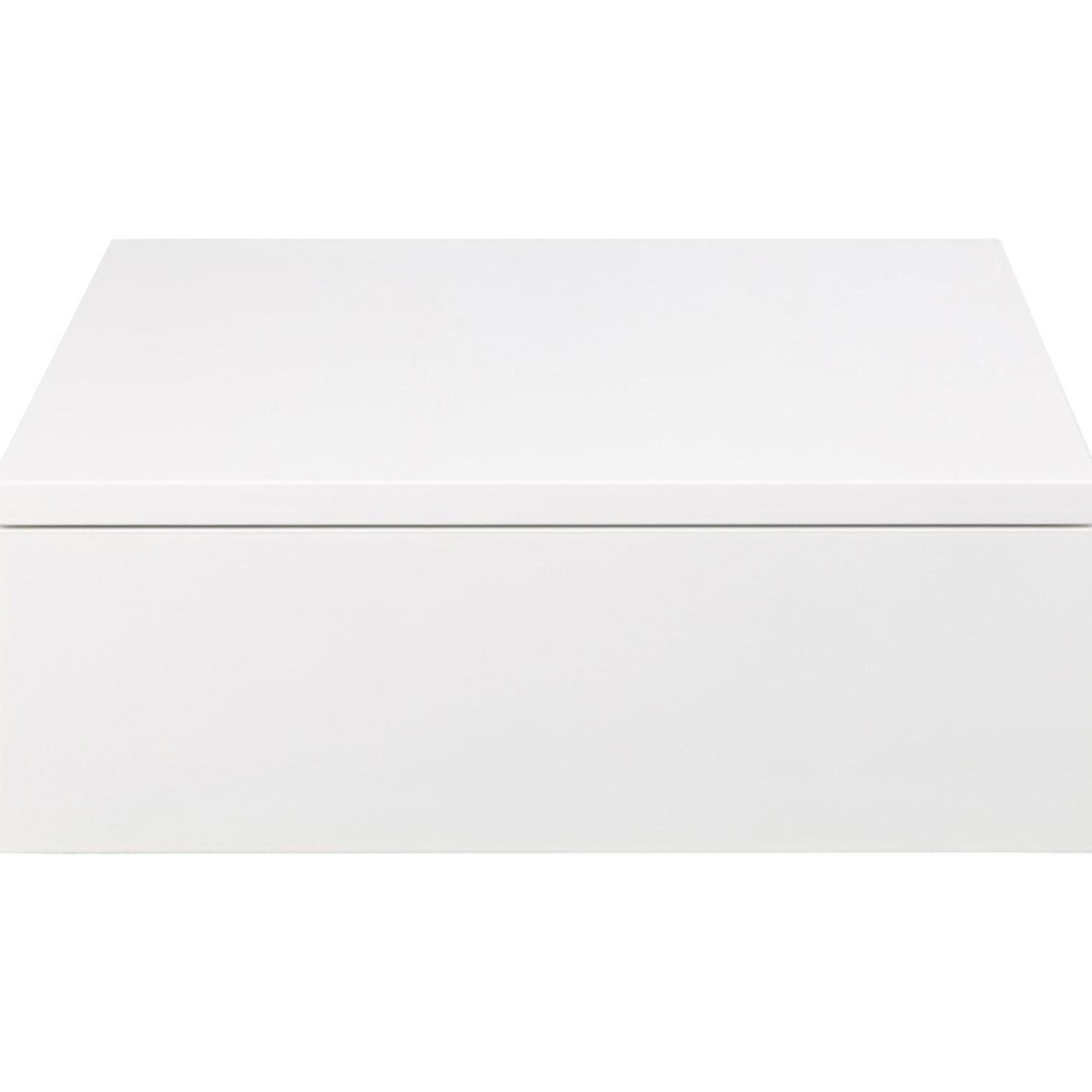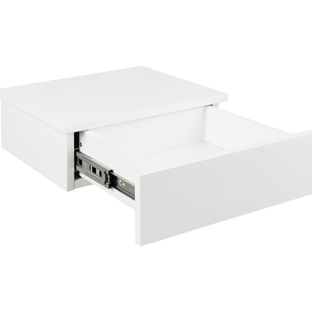 Avignon square bedside table, top, frame and drawer white UV painted MDF with metal runners and wall mounting, 37x32x13 cmThe ideal partner for any bedroom if you are into a minimalistic, sleek look. With clean lines and a white painted surface, this bedside table will not take over your bedroom. It is easy to hang the bedside table next to your bed at the height you prefer. Featuring a smooth gliding drawer, you can keep your essentials hidden from dust.