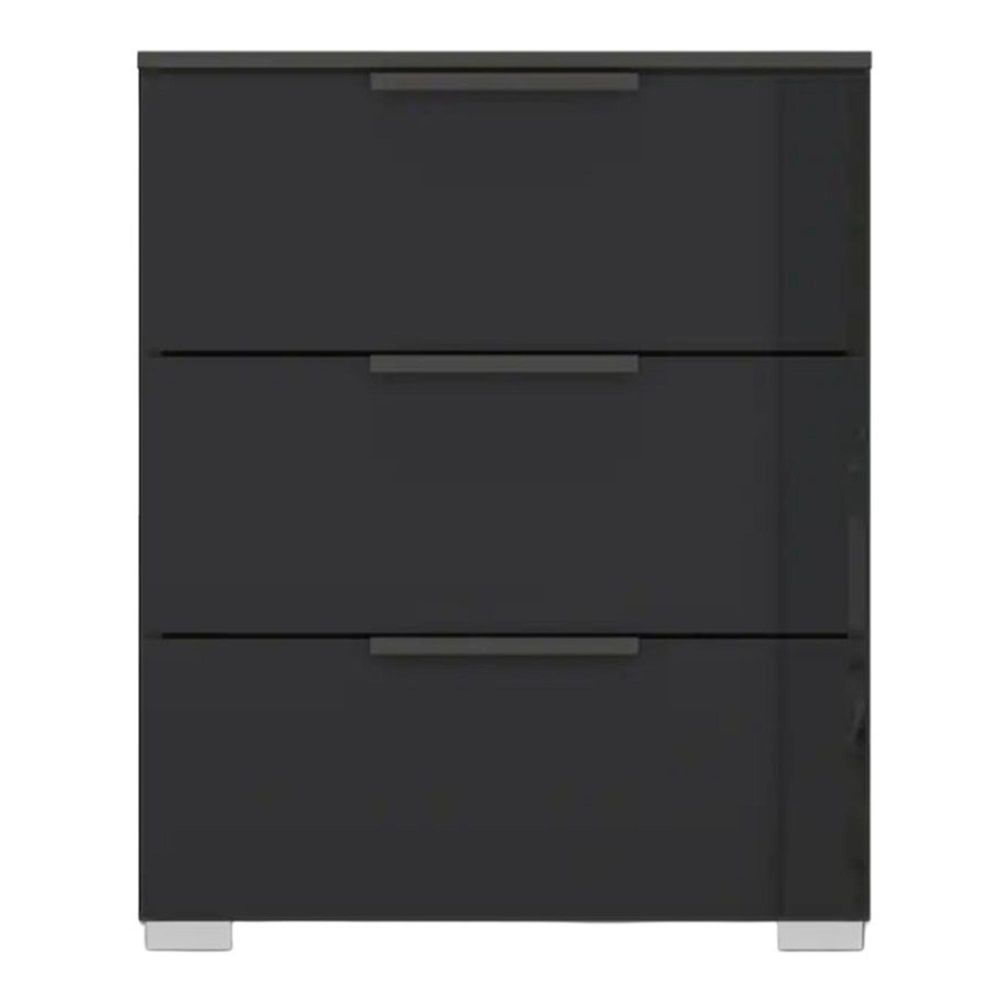 Rauch Skat Meridian 3 Drawer Bedside Cabinet - Graphite and Basalt Glass