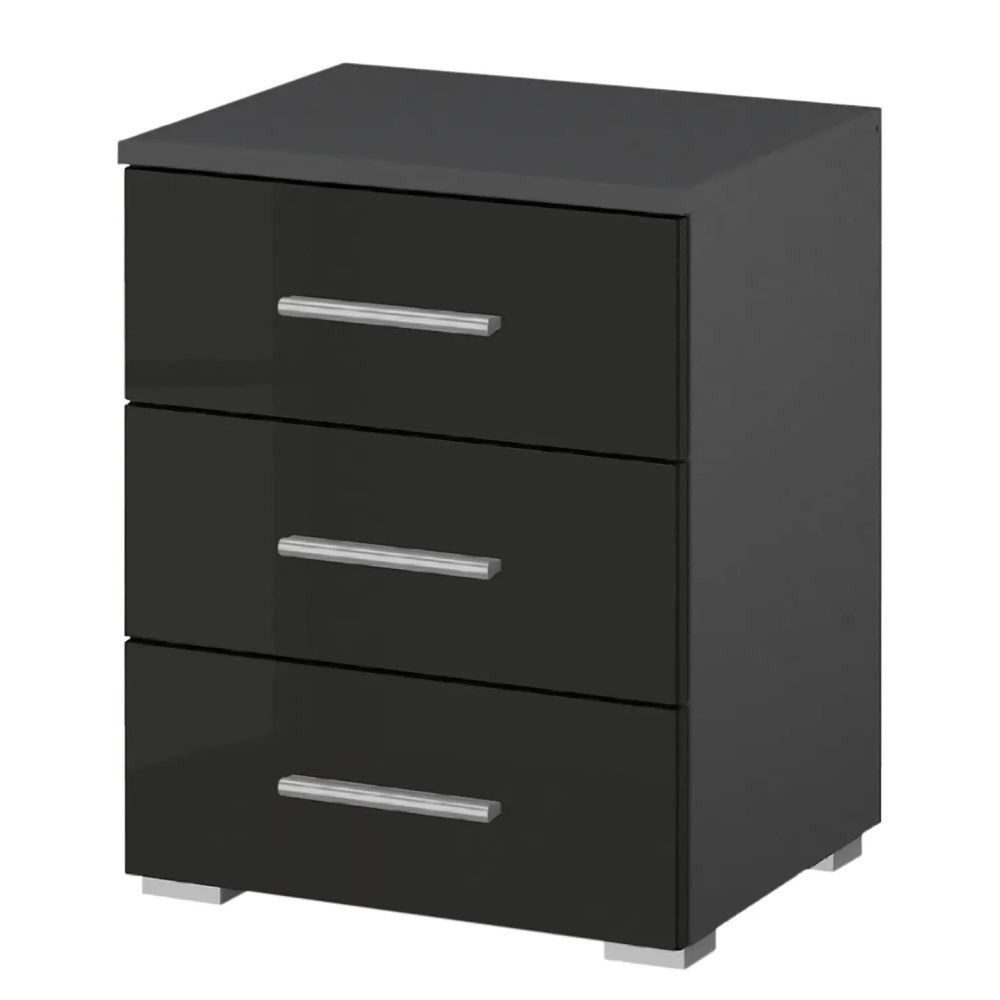 Rauch Base 3 Drawer Bedside Cabinet - Metallic Dark Grey and Grey High Gloss