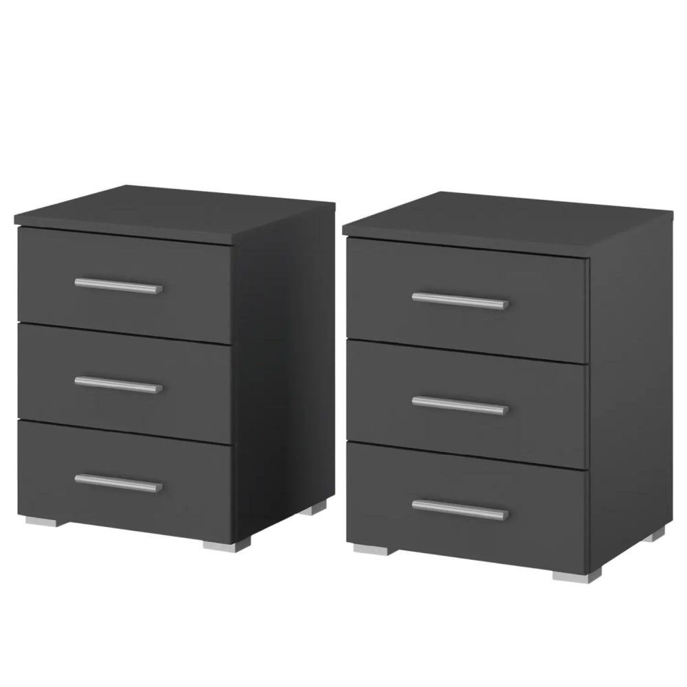 Rauch Base 3 Drawer Bedside Cabinet - Set of 2 - Metallic Dark Grey