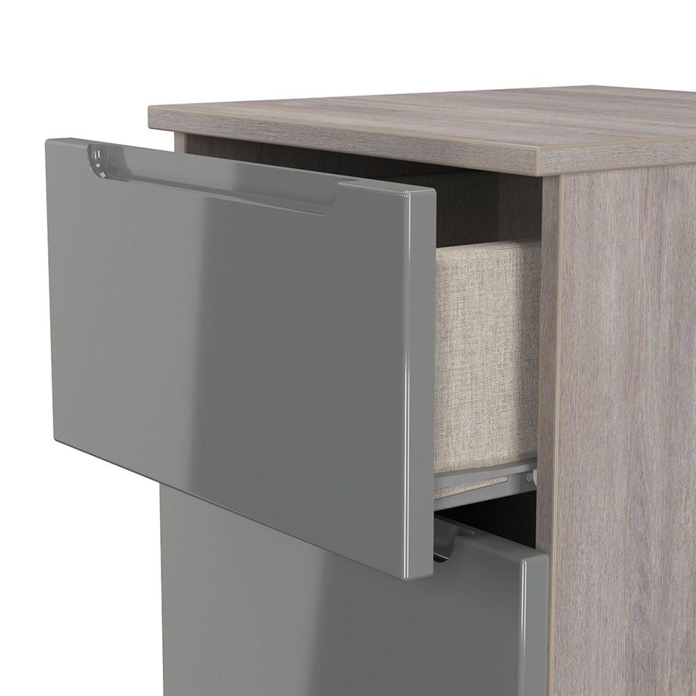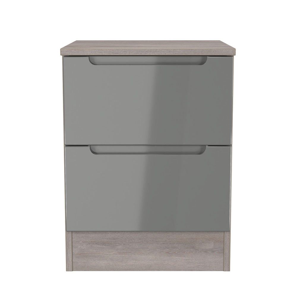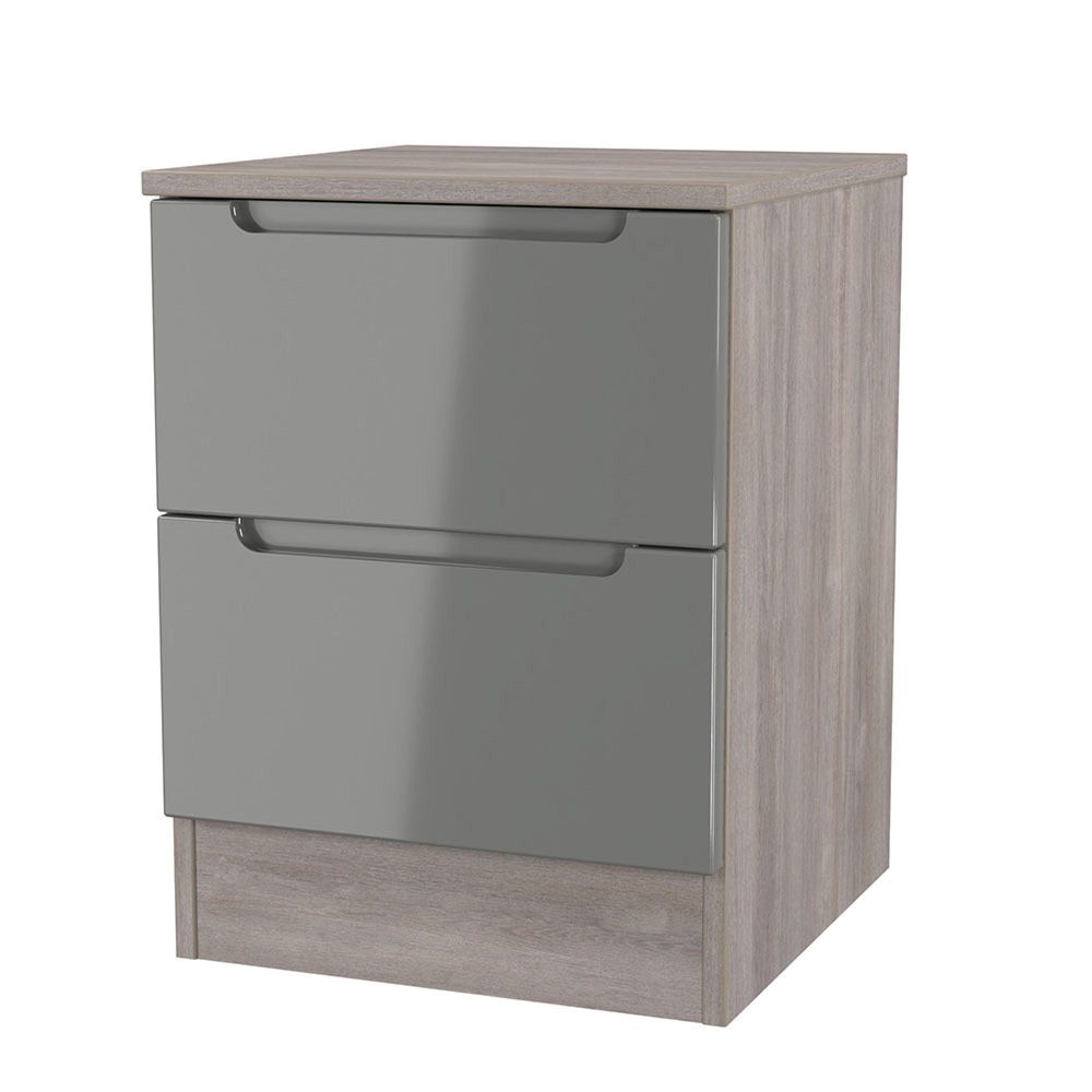 Milan Grey Gloss and Grey Oak 2 Drawer Bedside Cabinet