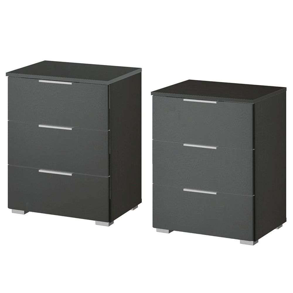 Rauch Alabama 3 Drawer Bedside Cabinet - Set of 2 - Metallic Dark Grey