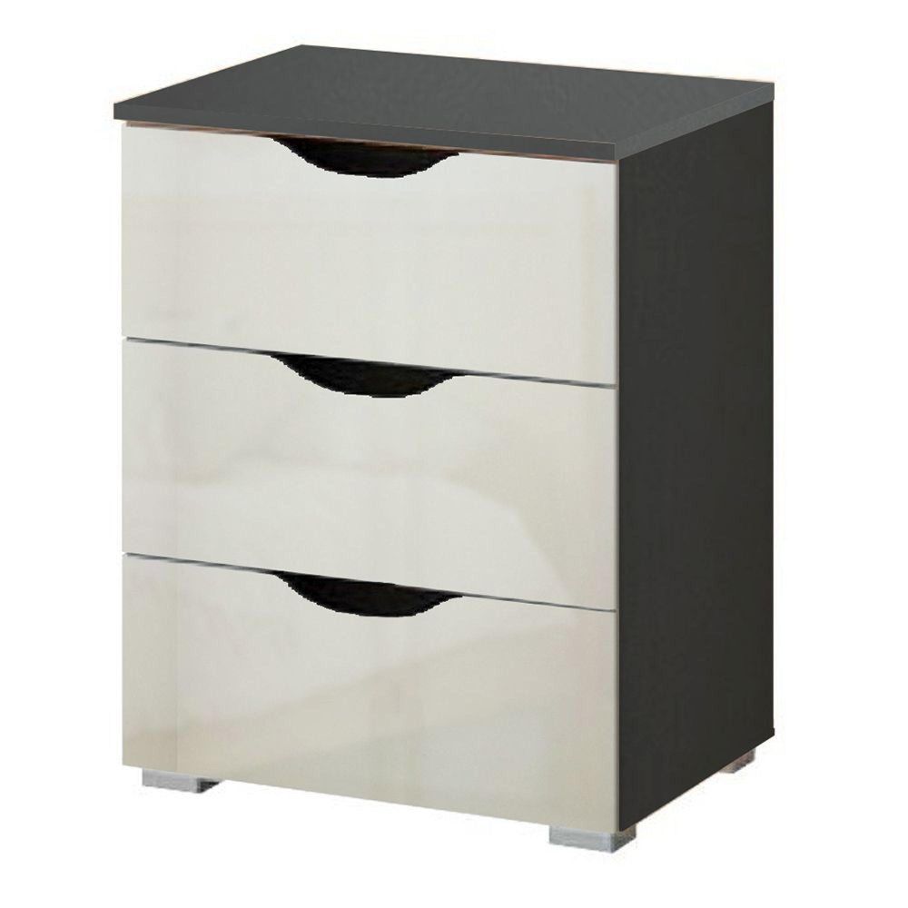 Rauch Arnstein 3 Drawer Bedside Cabinet - Metallic Dark Grey and White High Gloss