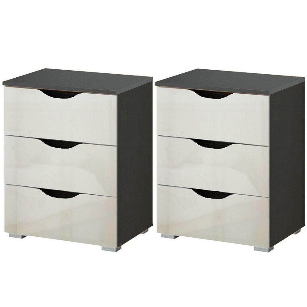 Rauch Arnstein 3 Drawer Bedside Cabinet - Set of 2 - Metallic Dark Grey and White High Gloss