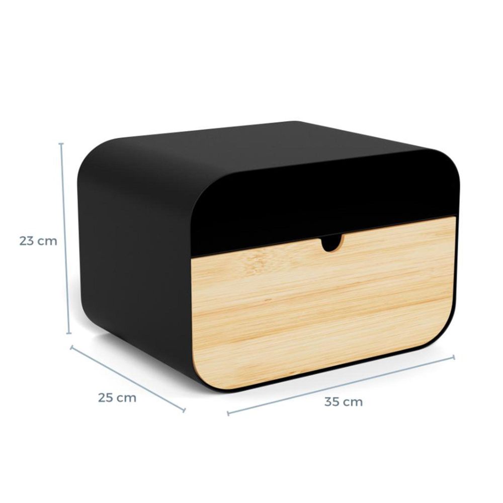 Item Code: 102972 Joliet bedside table, top and frame matt black rough powder coated steel, drawer NC lacquered bamboo with open compartment and wall mounting. Made of bamboo and steel this minimalistic wall unit is perfect for the bedroom or hallway. Hide your bits and bobs in the bamboo drawer and display your books on top. Inspired by the modern lifestyle, it comes in a visually striking finish and is both modern and timeless.Free Delivery