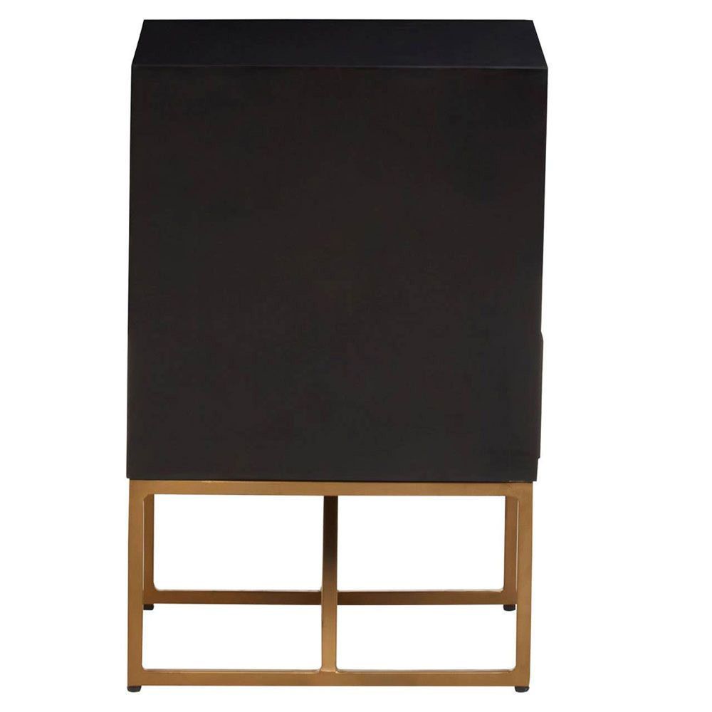 Item Code: 5529166 The Kochi three drawer mango wood side table is adorned by gold iron handles and legs, creating an elevated bohemian aesthetic.The Kochi side table has an elevated bohemian aesthetic. Deep mango wood is complemented by minimalist contemporary gold iron handles and legs. Ample storage space is available thanks to spacious drawers.