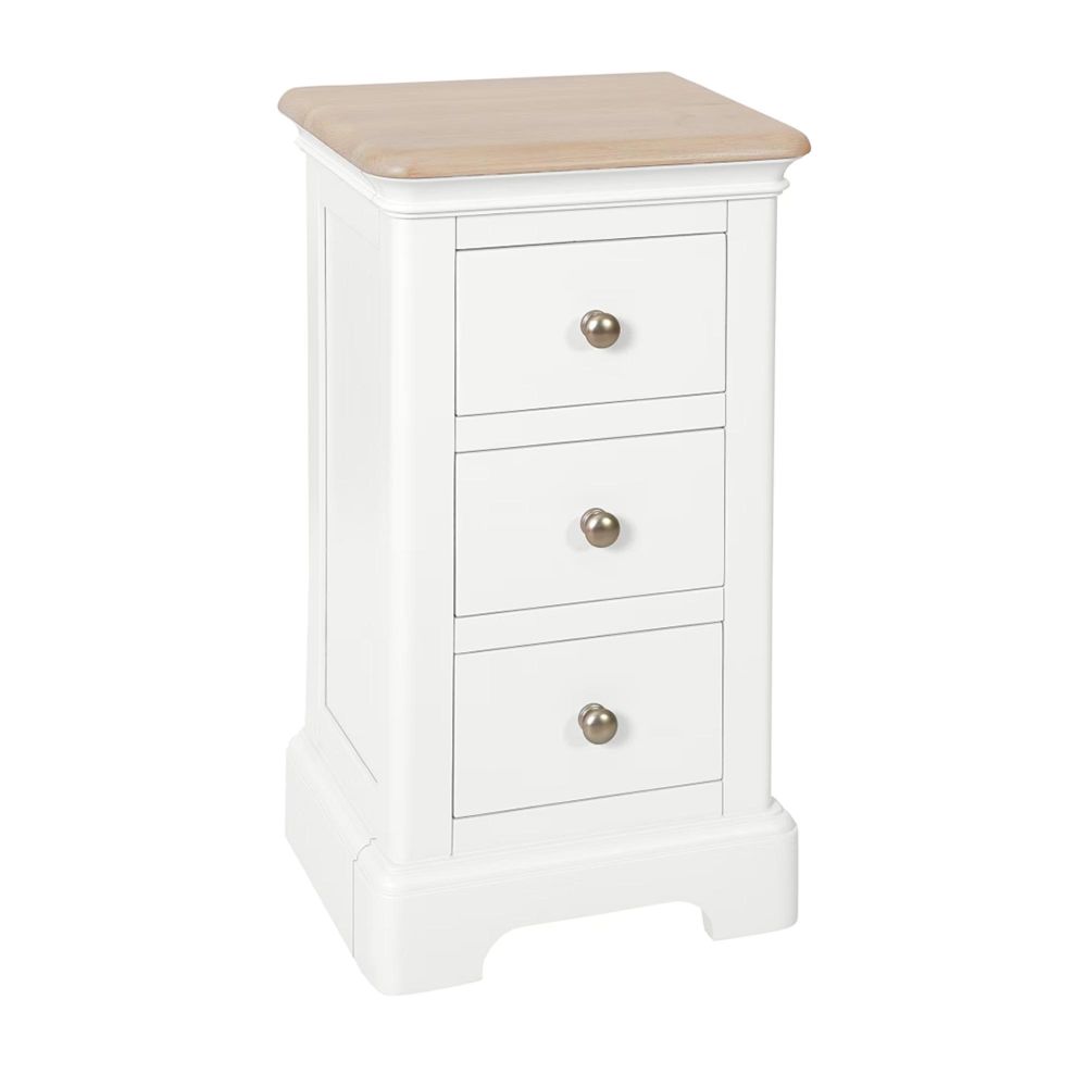 Cromwell Bedside Cabinet - 3 Drawer Compact - White Painted