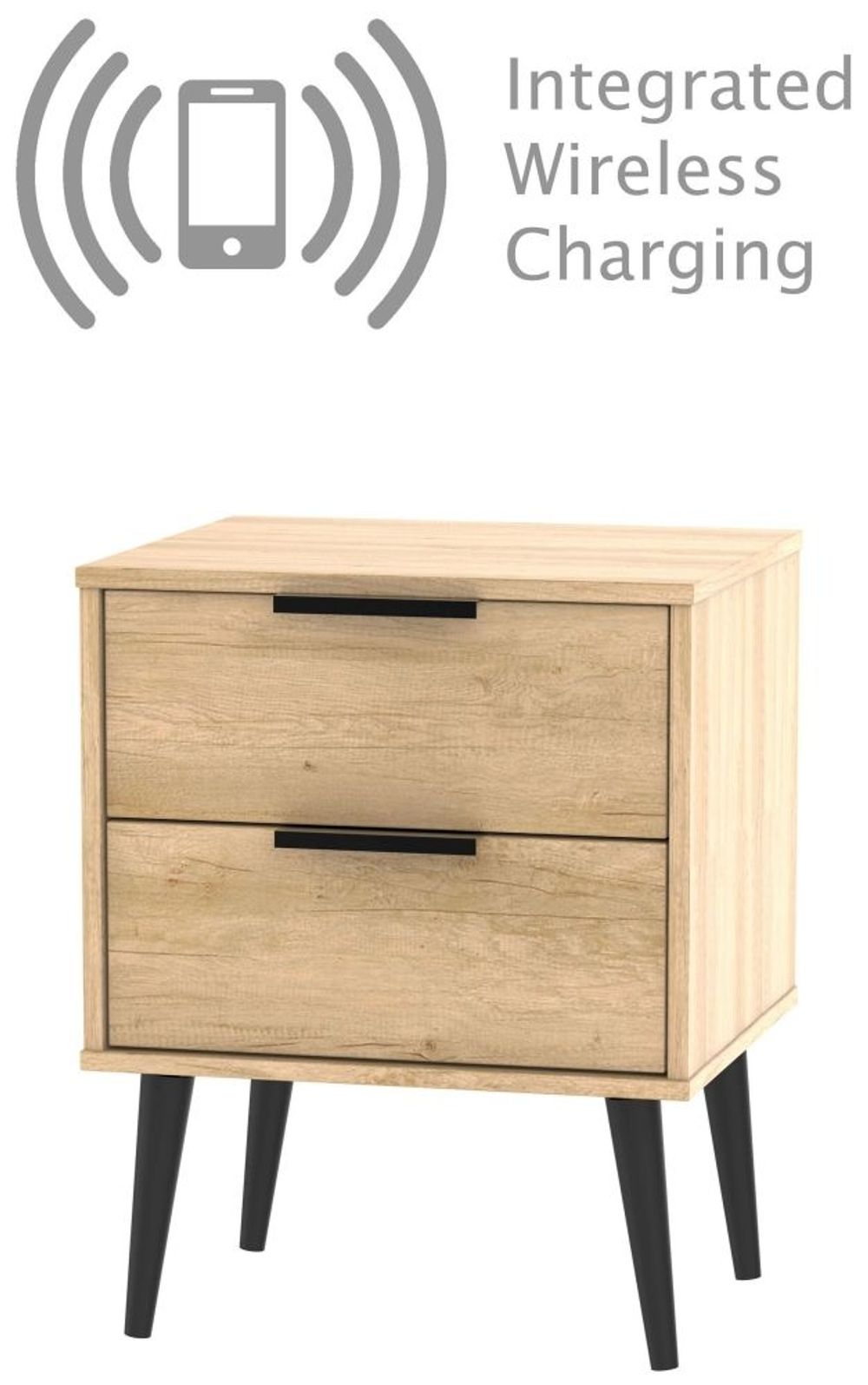 Hong Kong Oak Effect 2 Drawer Bedside Cabinet with Wooden Legs