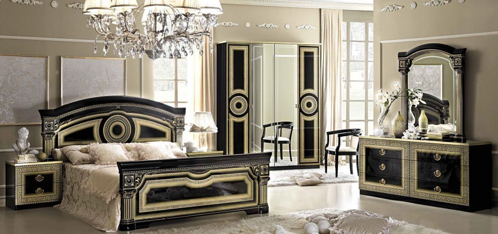 Item Code: 099CMN.02OR Aida bedroom is now presented in Black Gold and Black Silver new finish Soft chromatic details make the difference - Gold and Silver colour shades on flat surfaces and antique finishing on ornaments create a rich design with classical elements fused together in elegant atmospheres.This is a Made to Order itemAll Made to Order items are manufactured as per the order supplied by you.We are unable to accept cancellation or accept any extra cost that may incur due to wrong information provided by you at the time you placed the order.We will confirm all sizes/colours/finishes in written email (order confirmation) with you before going ahead with production of your order.