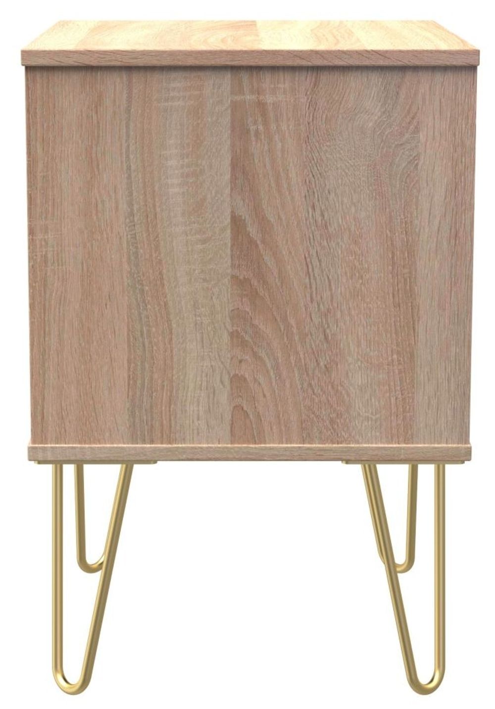 Diamond Oak Effect 2 Drawer Bedside Cabinet with Gold Hairpin Legs
