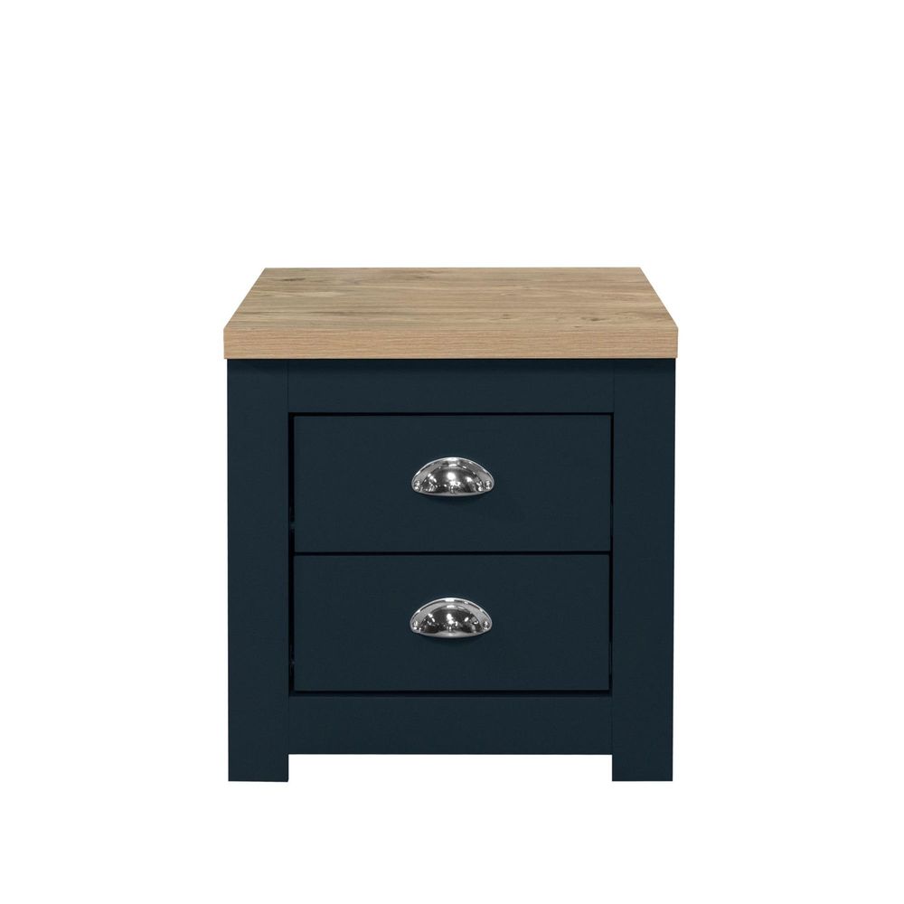 Item Code: HIG2BNOK Inspired by classic farmhouse furniture the Highgate range has been designed to complement both modern and traditional homes.Available in cream & oak, grey & oak and navy & oak this range will suite a wide array of interiors.The Highgate 2 drawer bedside features 2 handy drawers ideal for storing away any belongings.The drawers are finished off with beautiful silver cup handles.Care instructions: Wipe carefully with a soft, dry cloth.