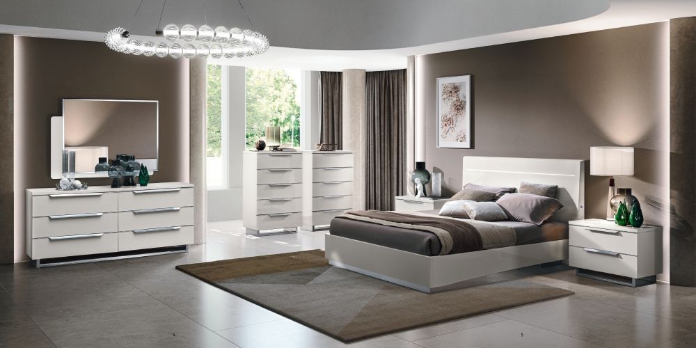 Item Code: 174CMN.02BI The luminous white glossy finish is coupled togheter with trapezium shaped brushed alluminium handles. Swithces for the LED diffuesd light (4000 K)located on both sides of the headboard. Beds with anti dust platform. Safe and easy to use storage space solution available. Night tables, tallboy and dressers tops 30mm thick whilst the inside of the drawer is covered with antiscratch material. All drawers run on soft closing guides.This is a Made to Order itemAll Made to Order items are manufactured as per the order supplied by you.We are unable to accept cancellation or accept any extra cost that may incur due to wrong information provided by you at the time you placed the order.We will confirm all sizes/colours/finishes in written email (order confirmation) with you before going ahead with production of your order.