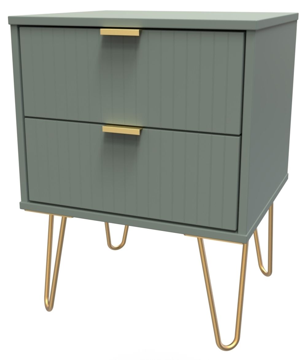 Linear Green 2 Drawer Bedside Cabinet with Gold Hairpin Legs
