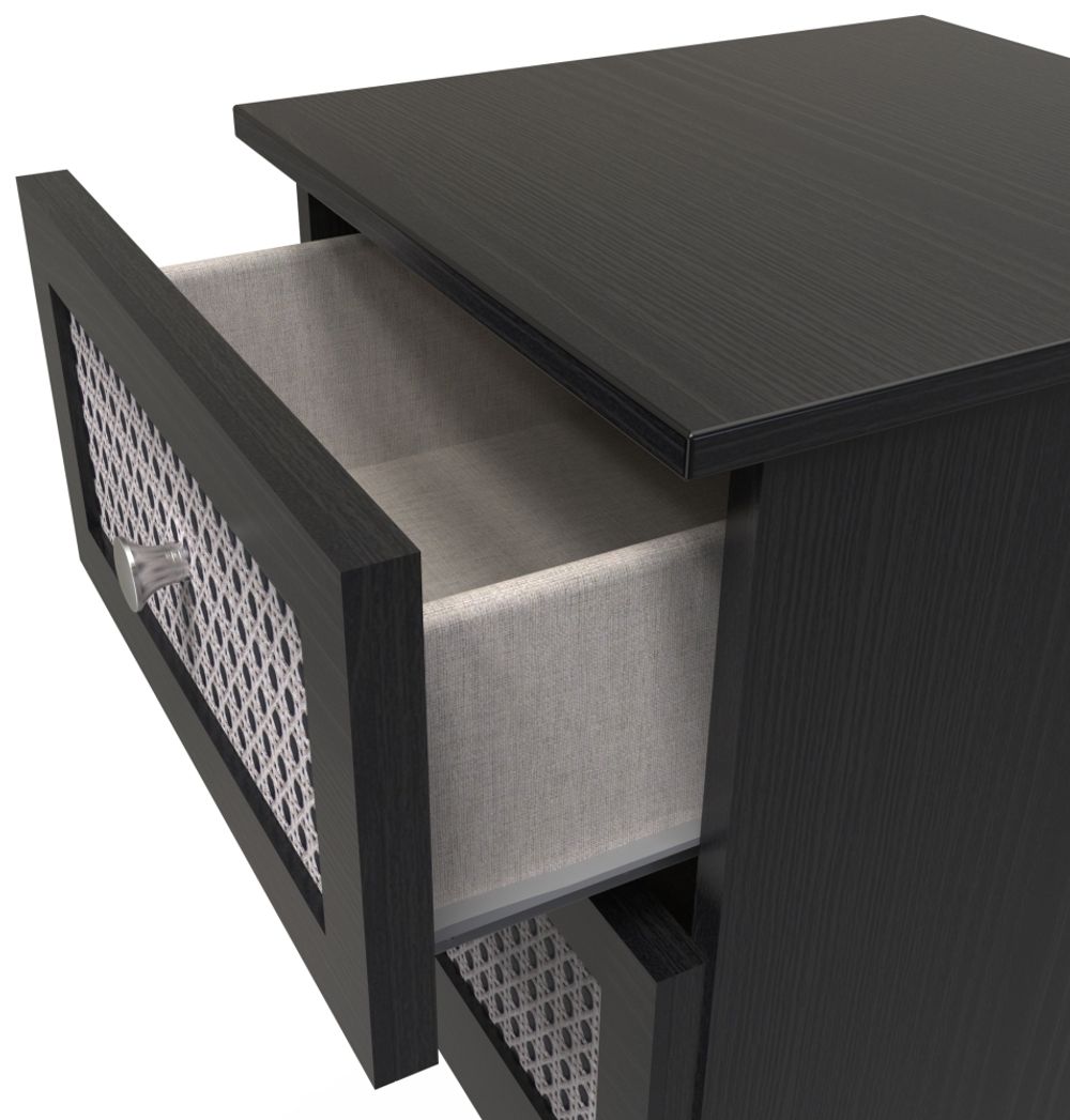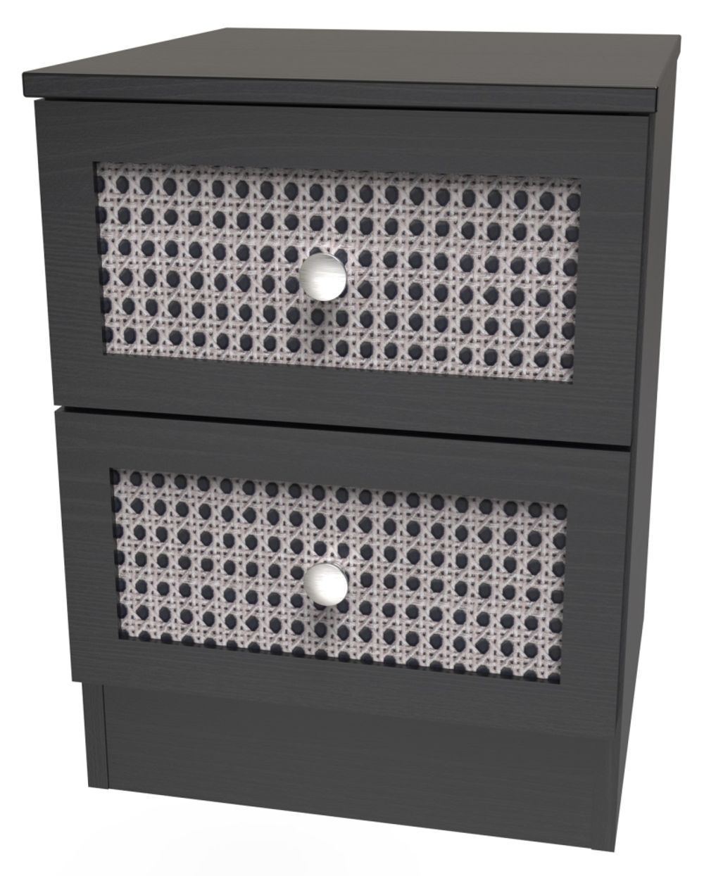 Rattan and Black Ash 2 Drawer Bedside Cabinet
