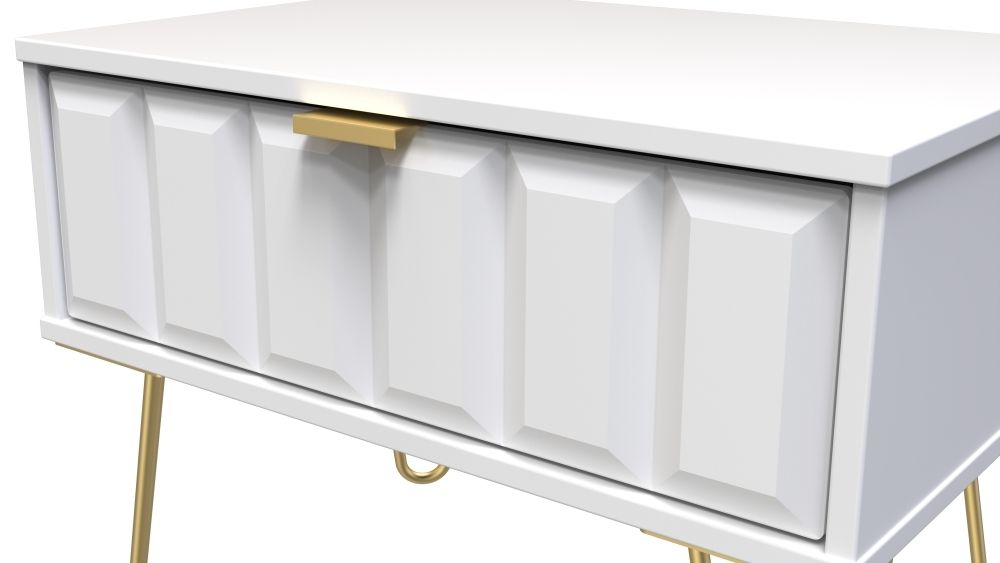 Cube White 1 Drawer Wide Bedside Table with Gold Hairpin Legs