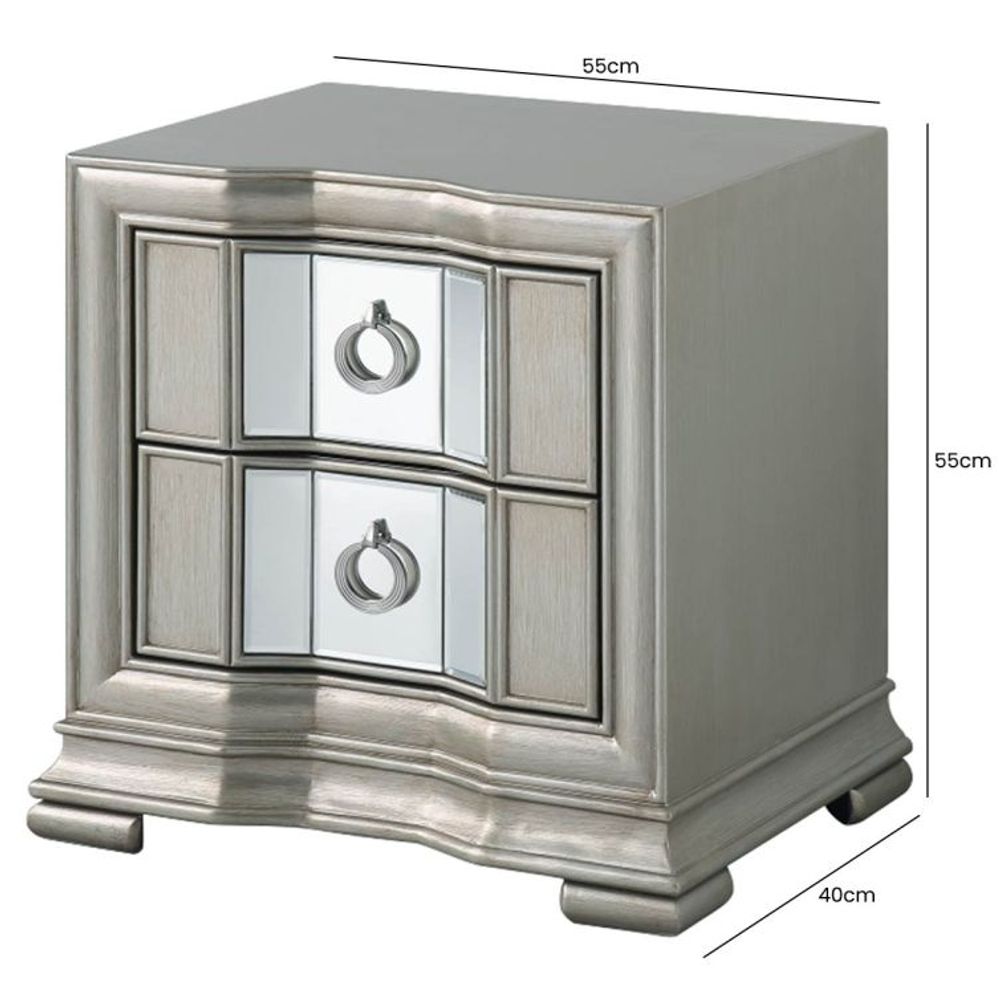 Lucca Bedside Cabinet - 2 Drawer - Mirrored - Grey