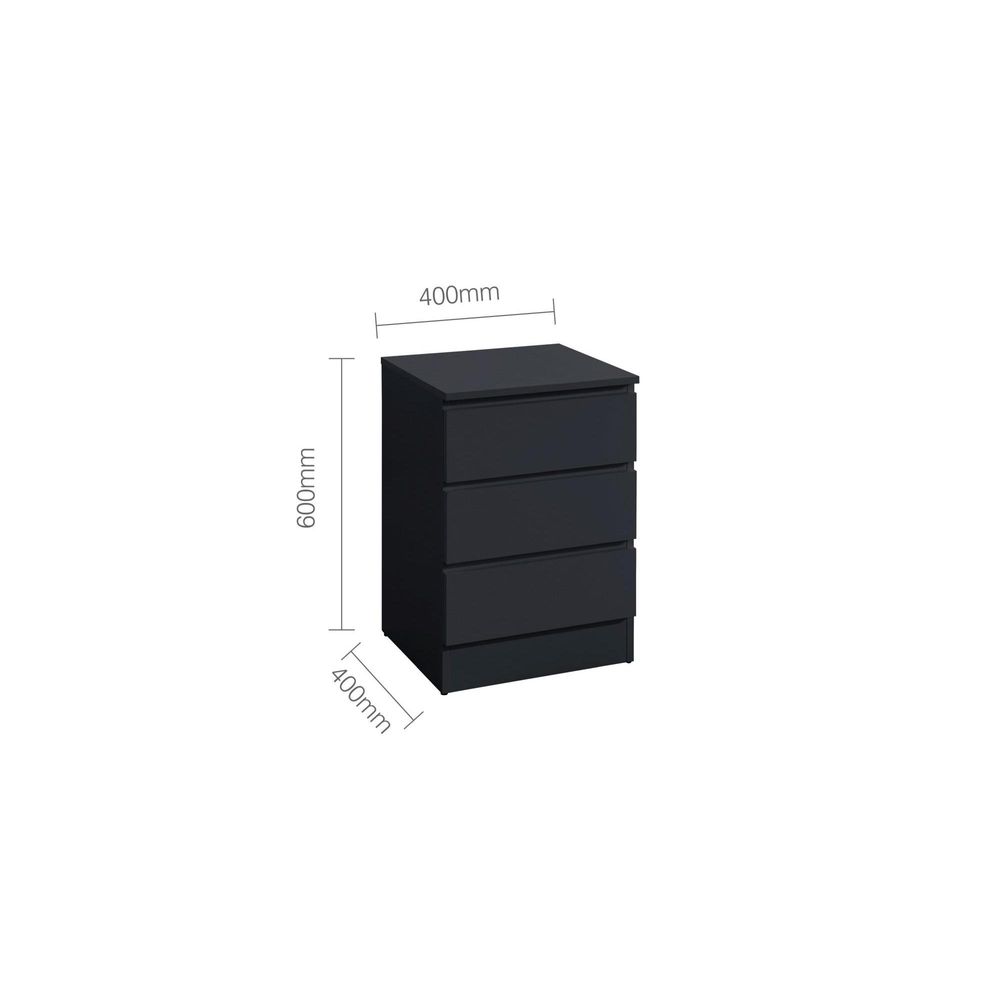 Oslo Bedside Cabinet - 3 Drawer - Black