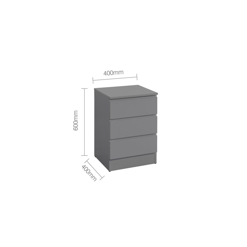 Oslo Bedside Cabinet - 3 Drawer - Grey