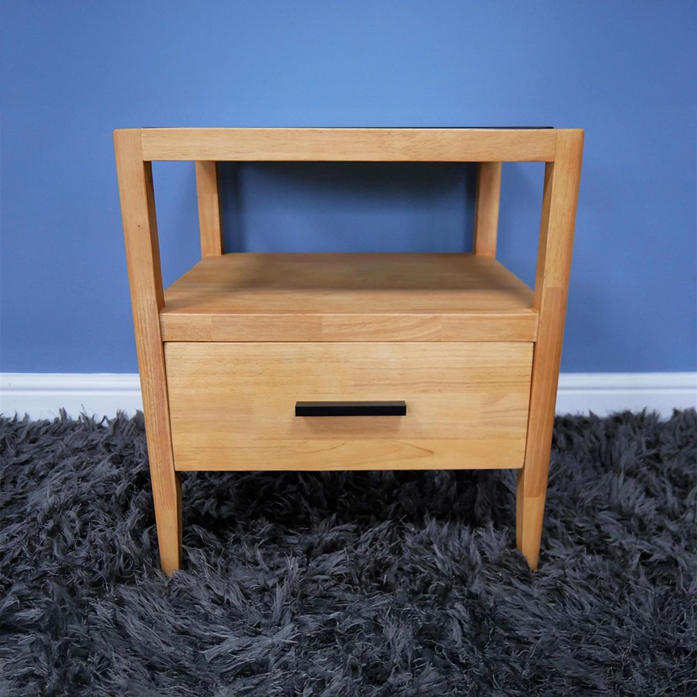 Bedside Cabinet - 1 Drawer - Wood and Black Glass