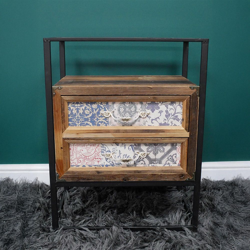 Bedside Cabinet - 2 Drawer - Fir Wood and Metal