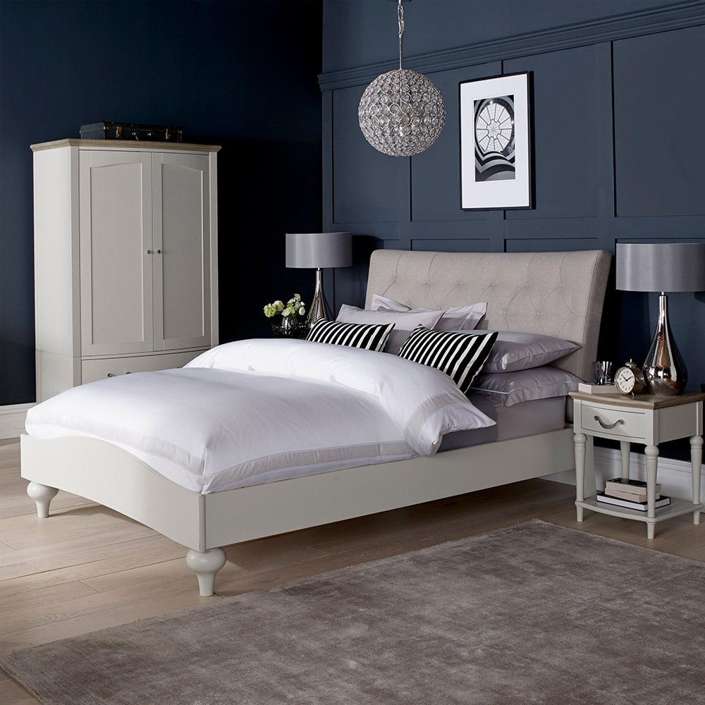 Item Code: 6290-71 With a contemporary twist to a traditional design, Montreux is a beautifully crafted range with bold, contrasting bespoke silver handles. Design features such as gently bowed fronts, classical corniced tops and turned legs demonstrate attention to detail, whereas practical Blum soft-closing drawer runners, high quality hardware and a durable protective finish all attest to the quality of this elegant range. Centre piece of this collection is the king size upholstered bedstead with stunning diamond stitch patter and refined curved frames, granting Montreux bedroom as updated classic suited to both modern and traditional settings.