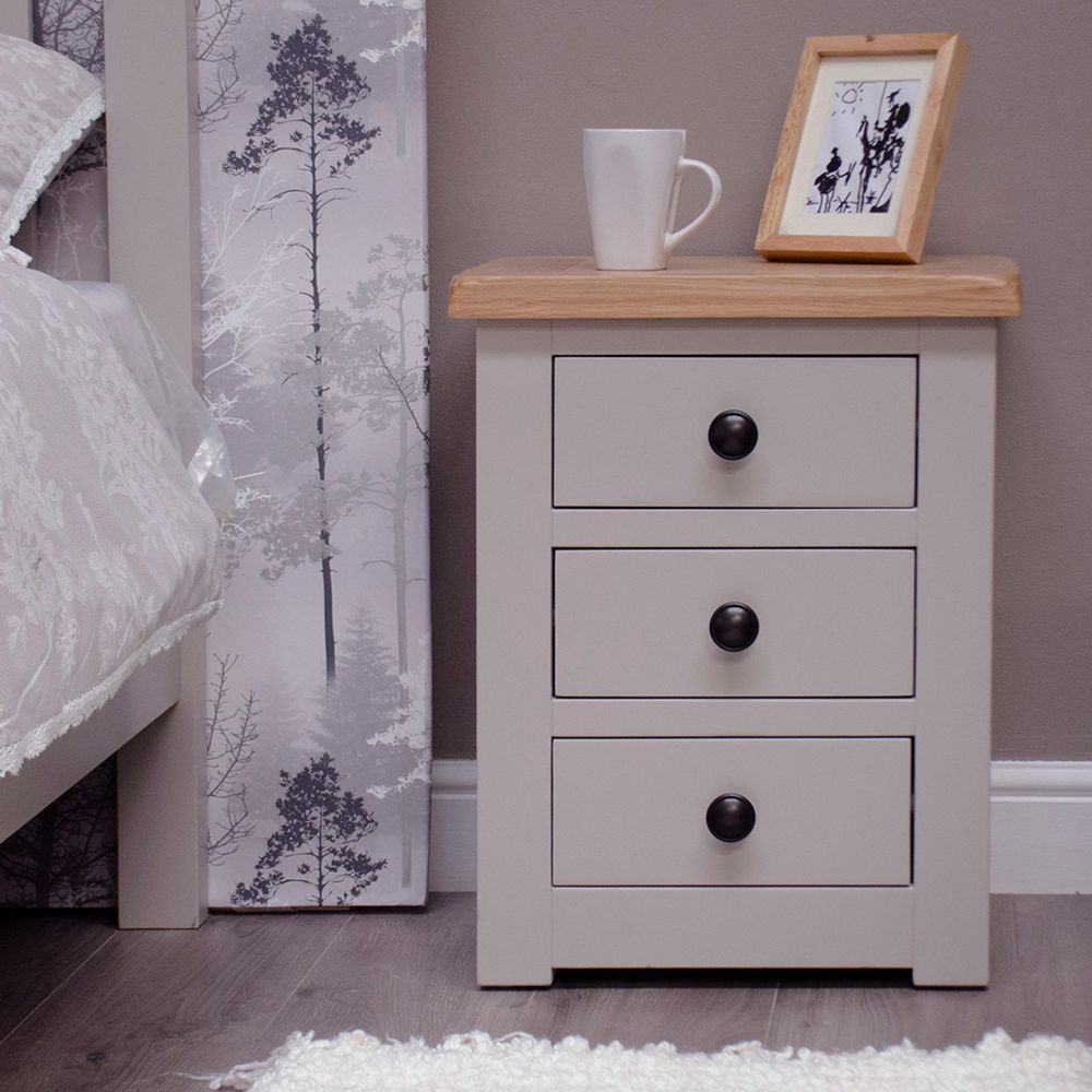 Bring timeless craftsmanship and practical charm to your bedroom with the Diamond Painted Bedside Cabinet. This beautifully designed piece combines traditional woodworking with a refined modern finish, making it a perfect companion for any elegant interior. With a grey painted body and a lacquered solid oak top, the cabinet captures a soft, classic look while maintaining the strength and durability of solid wood.