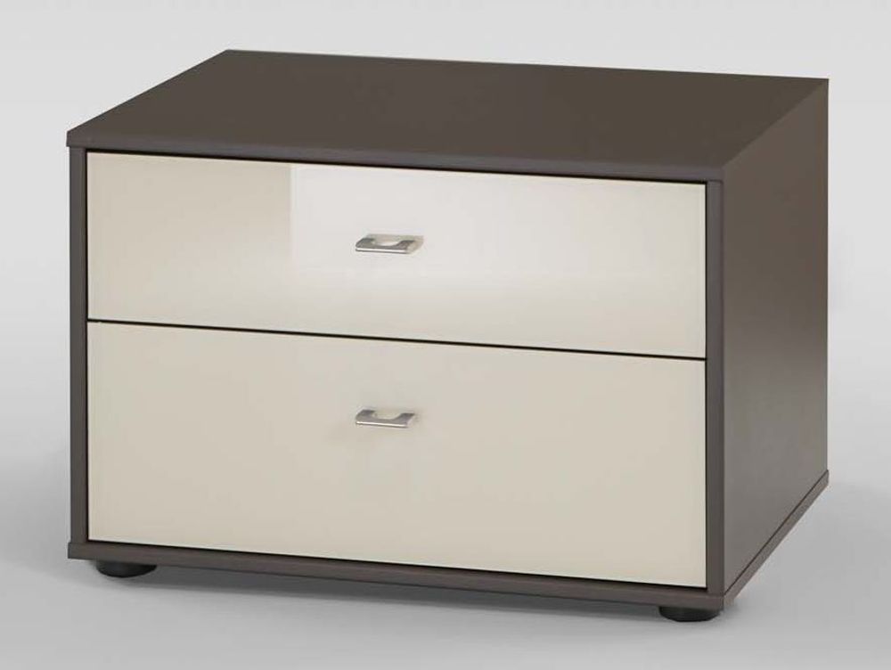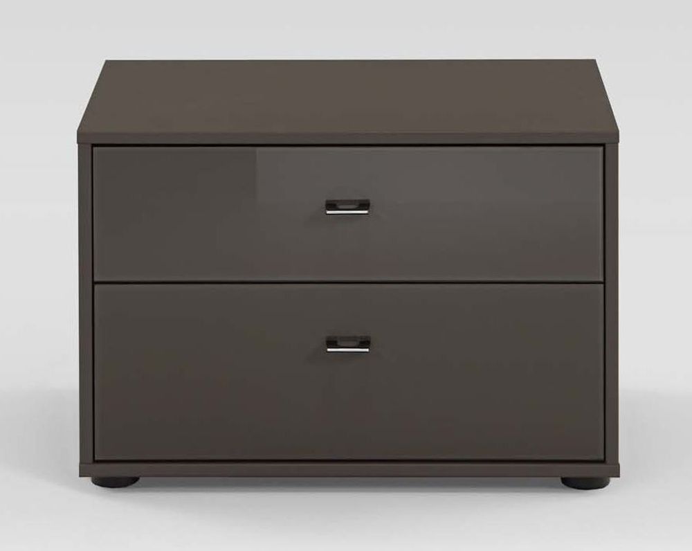 956 : 2 Drawer Bedside Cabinet with Graphite Glass Drawers and Silver Handles