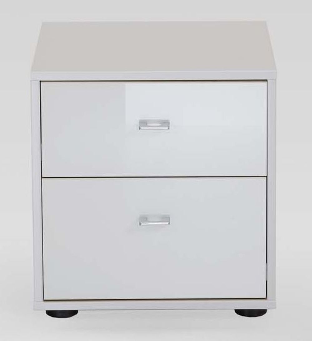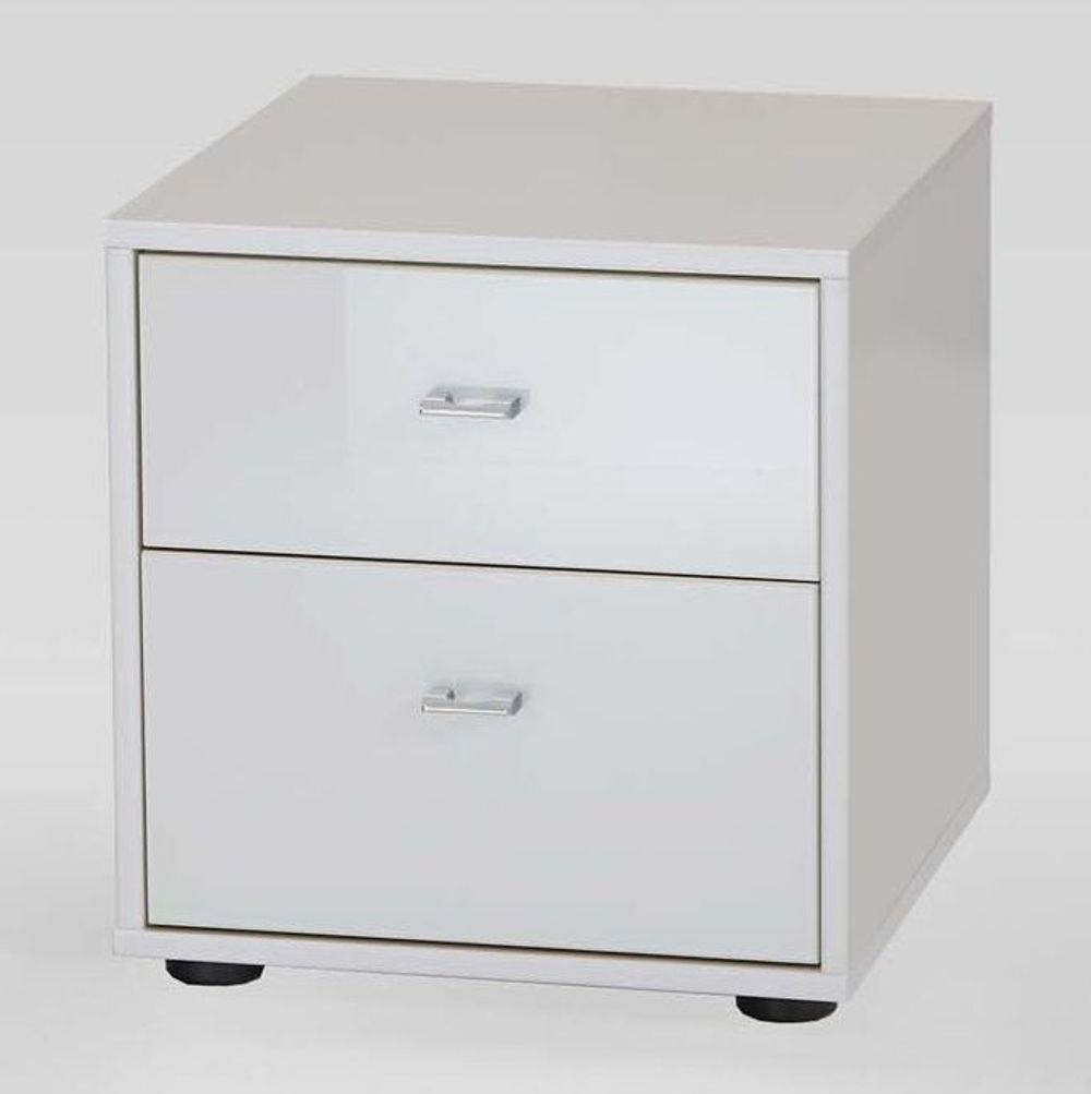 731 : 2 Drawer Bedside Cabinet with White Glass Drawers and Chrome Handles