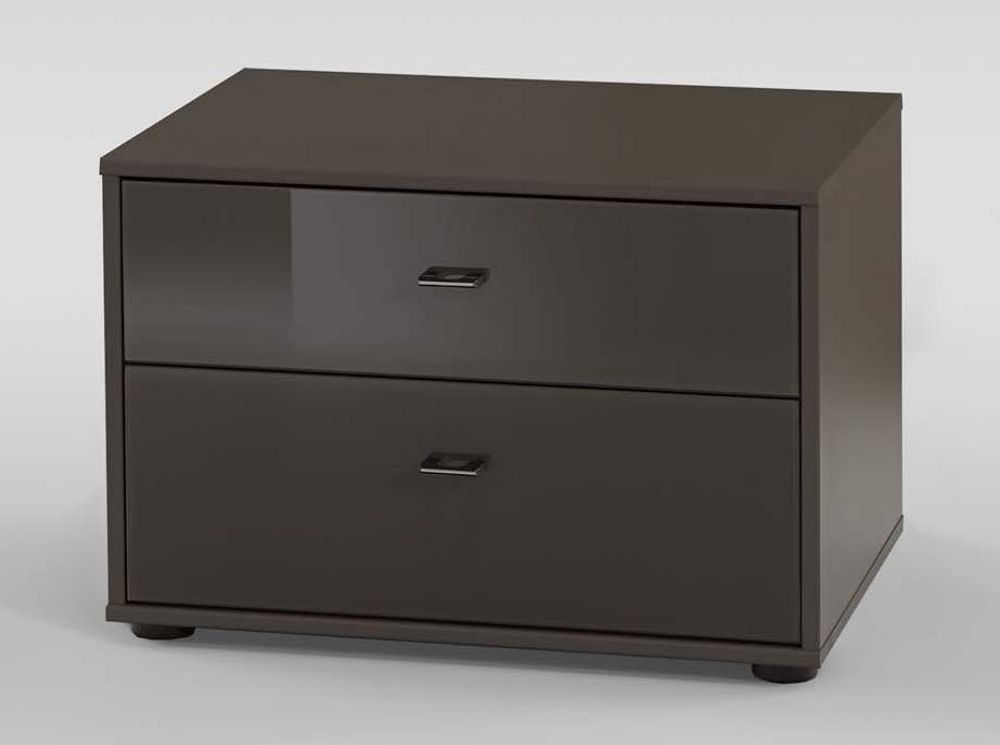954 : 2 Drawer Bedside Cabinet with Graphite Glass Drawers and Chrome Handles