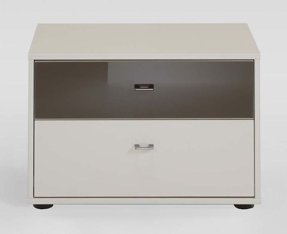 664 : 2 Drawer Bedside Cabinet with Alpine White Top Drawers and Silver Handles