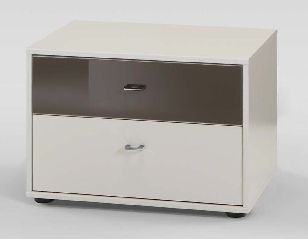 662 : 2 Drawer Bedside Cabinet with Alpine White Top Drawers and Chrome Handles