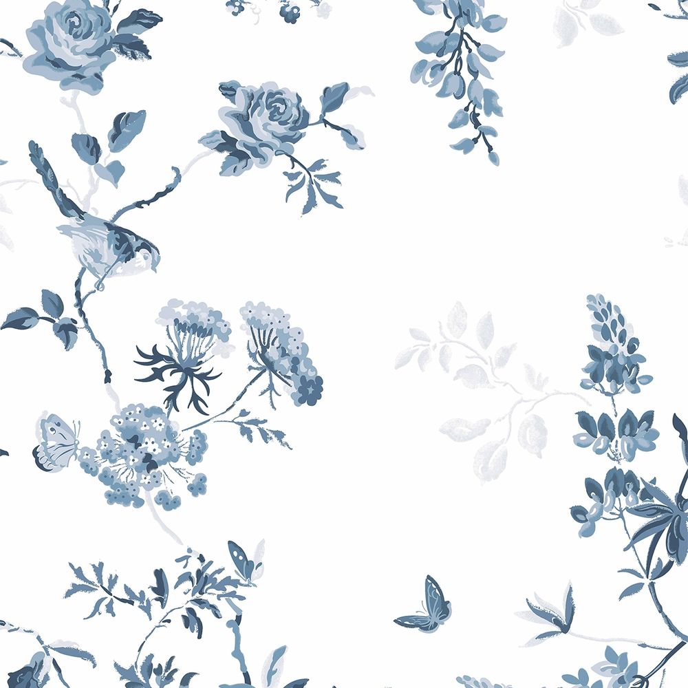 Featuring an illustrated pattern of birds and roses in cooling blue shades with a pure white background, this design can create a calm and relaxed atmosphere in your home.