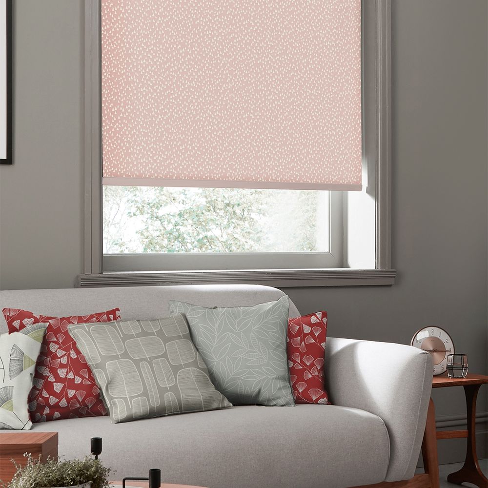 Item Code: ROLF-2435TTR Featuring a small abstract pattern of white tree-like triangles over a pastel pink background, this repeating design creates a warm and friendly feeling for any room.