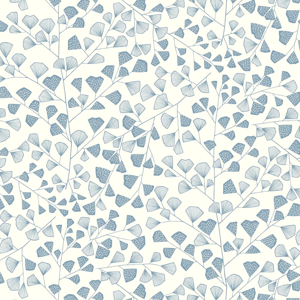 Item Code: ROLF-2445TTR Featuring a contemporary geometric pattern of fern foliage in shades of ocean-blue over a mono-white background, this design adds a bright and calming feeling into any room.