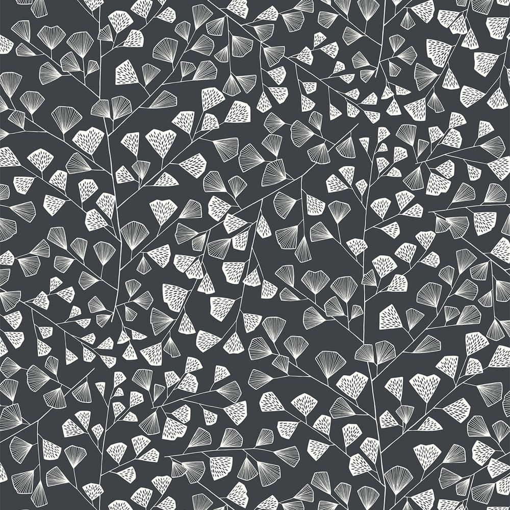 Item Code: ROLF-2446TTR Featuring a contemporary geometric pattern of fern foliage in pure white over a mono-black background, this design adds a stylish and minimalist feeling to any room.