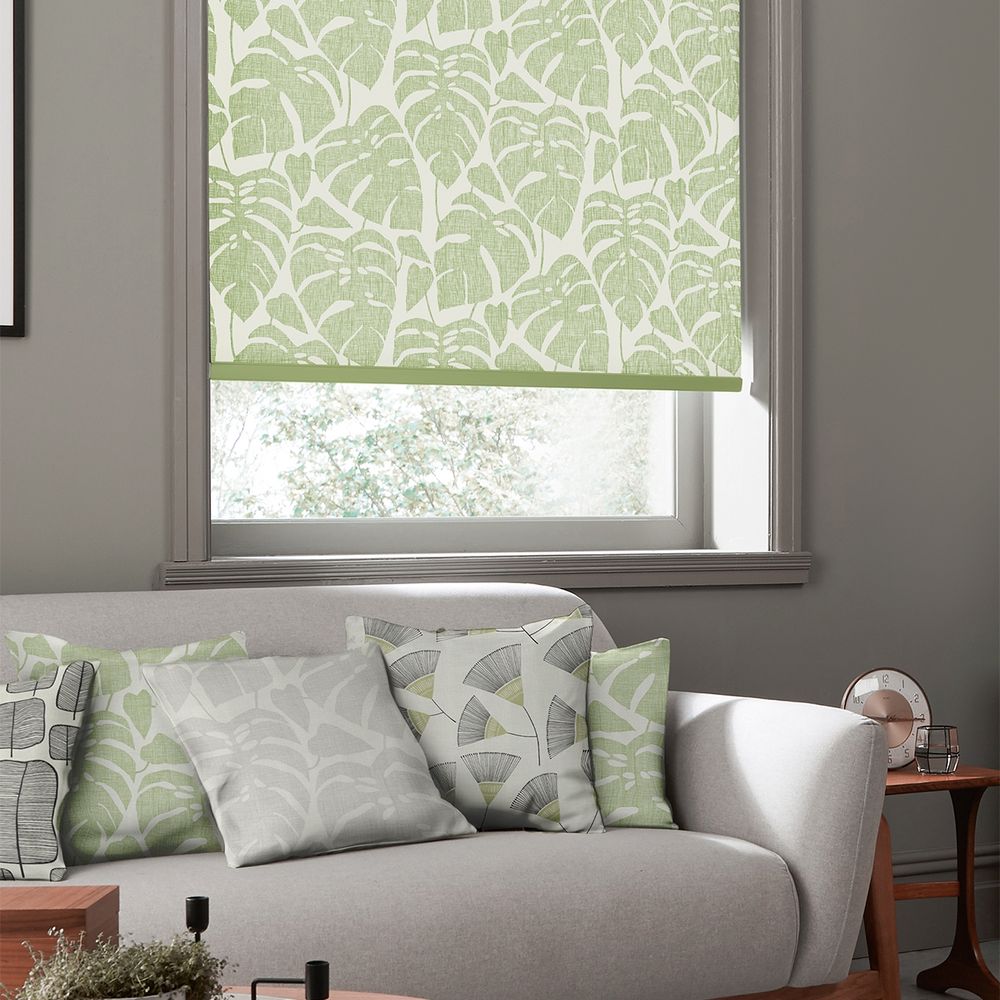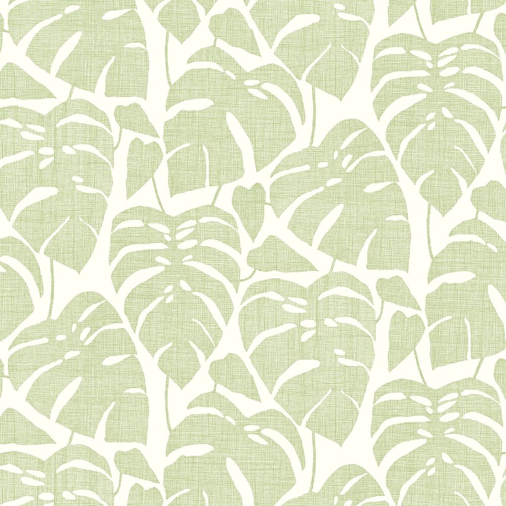 Item Code: ROLF-2449TTR Featuring a contemporary style of large tropical leaves with a bright green cross-hatched pattern on a pure white background, this design is ideal for creating a bright and calming space in any room.