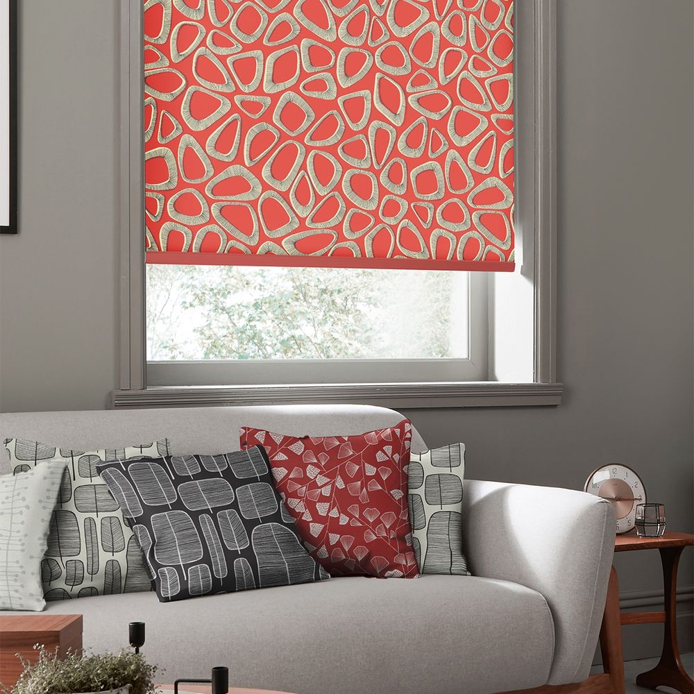 Item Code: ROLF-2474TTR Taking its inspiration from pebble stones, this abstract design uses rich reds and whites to create an energetic style with a warming sense of comfort.