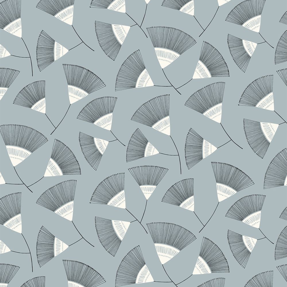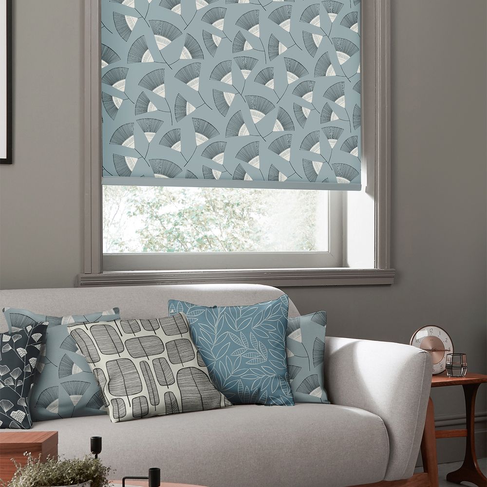 Item Code: ROLF-2479TTR Featuring a natural-inspired geometric flower head pattern, this screen-printed design uses bright white on a sea-blue background to create a calm and refreshing atmosphere in any room.