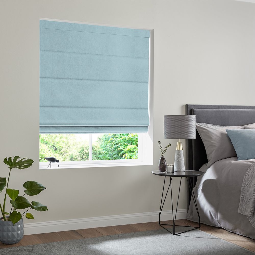 Item Code: ROMF-0280-RM With its pure light blue hue and subtle weave-like cotton texture, this fabric is perfect for adding a bright and serene style into any rooms decor.